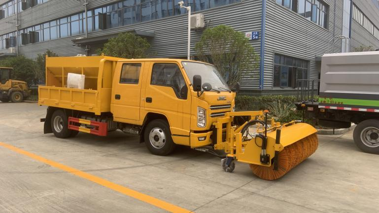 | 上裝配置 | 箱體尺寸2600*2060*400mm,箱體內(nèi)裝 3立方融雪撒布機,撒布機采用 V 型料倉,結(jié)構(gòu)簡單可靠,使融雪劑自動落料,出料完全,無殘留。駕駛室可加裝2米除雪鏟或者2米除雪滾。 | ||