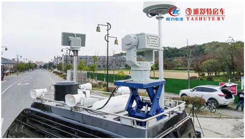 頂部:雷達偵測設(shè)備,電子干擾及無人機誘騙一體,無線電檢測設(shè)備,光電跟蹤設(shè)備