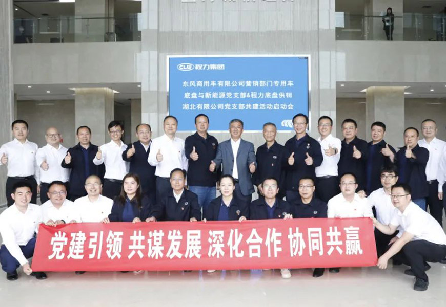 5月末,程力集團(tuán)黨委牽頭,東風(fēng)商用車有限公司營(yíng)銷部門專用車底盤與新能源黨支部攜手程力底盤供銷湖北有限公司黨支部,聯(lián)合開(kāi)展“奮進(jìn)新時(shí)代,共創(chuàng)向未來(lái)”共建活動(dòng)。